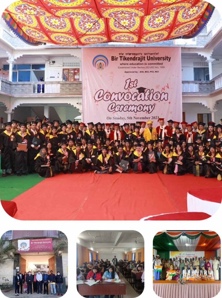 Bir Tikendrajit University is a new age university driving individual empowerment and social progress through blended learning. We believe in providing education that cultivates creative understanding, enables diverse, talented, hardworking graduates to pursue disruptive thinking leading to productivity, to enjoy the pleasures of lifelong learning, and to reap the satisfactions of aiding communities around us. At BTU, we intend to attract & serve students from diverse social, economic and ethnic backgrounds and to be sensitive and responsive to those who have been underserved by higher education. The great philosopher Sri Vivekananda said that if students cannot reach the door of education, education will reach at the door of the students no matter where they live. In the long term, Bir Tikendrajit University aims at becoming a global institution through innovative programs linking humanities, arts, social sciences, pure sciences and health sciences, which will empower our students and faculty to collectively contribute to the world.